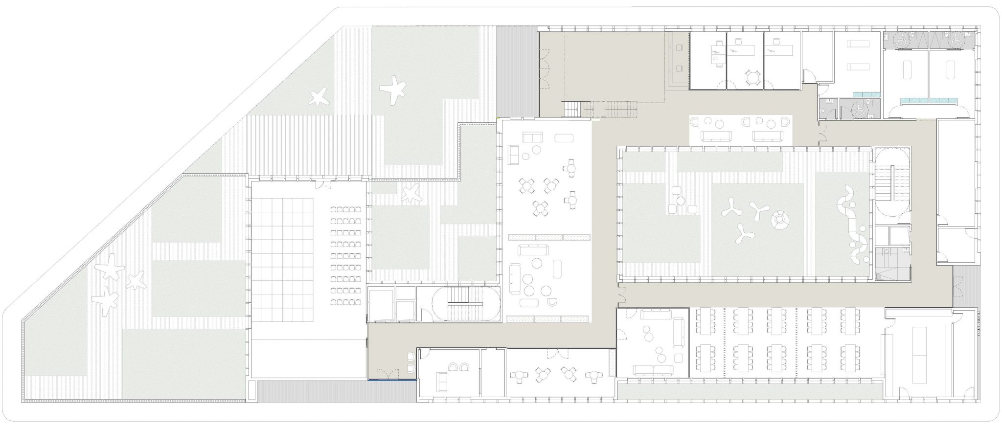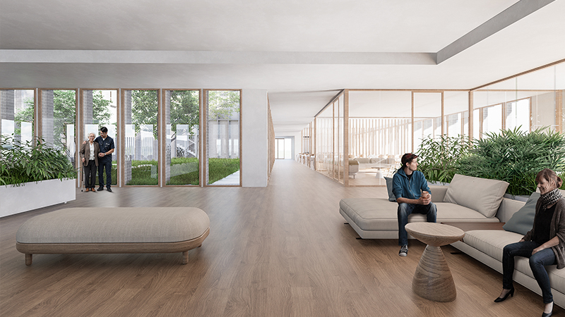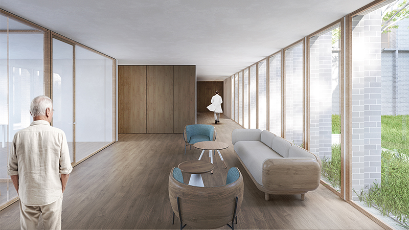 El proyecto se organiza en torno a dos volúmenes que se abren al paisaje interior, articulando patios y recorridos que favorecen la luz natural y la relación visual entre los espacios.